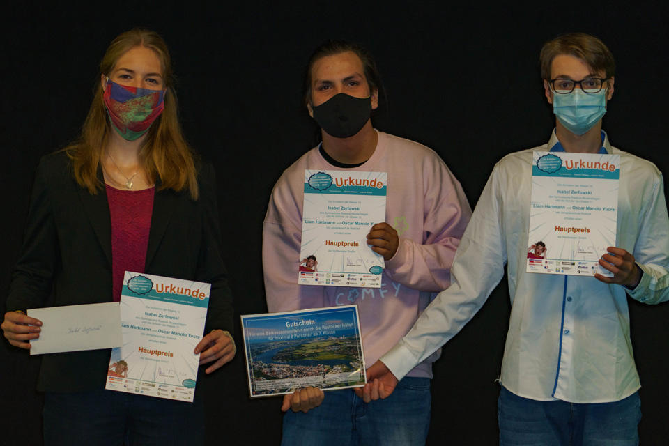 Welches Ungleichgewicht verursachen durch Menschen eingeschleppte Tierarten in einheimischen Ökosystemen? Dieser Frage sind die drei Schüler Isabel Zerfowski (Klasse 10, Gymnasium Reutershagen), Liam Hartmann und Oscar Manolo Yucra (Klasse 11, Jenaplanschule Rostock) im Programm „Schüler StAUNen“ nachgegangen und haben dafür den diesjährigen Hauptpreis erhalten. Unter insgesamt 36 eingereichten Projektarbeiten setzten sie sich mit ihrer von der IfAÖ - Institut für Angewandte Ökosystemforschung GmbH betreuten Abschlussarbeit „Neozoen in der Warnow“ bei der 18. Auflage des Programms durch. Die Proben nahmen sie, fachlich unterstützt durch Biologen des IfAÖ, mithilfe von Besiedlungsplatten in der durch Rostock fließenden Warnow. Alle drei Schüler eint ihr Interesse für Umweltthemen und Naturwissenschaften, so dass sie auch in Zukunft die Auswirkungen von Neozoen auf die heimische Fauna erforschen wollen. „Das Thema ist hochaktuell“, betont die Diplom-Biologin Lisa Schüler vom IfAÖ, die die Schüler zusammen mit ihrem Kollegen Frank Gloede bei ihren Untersuchungen unterstützt hat. „Laut der europäischen Meeresstrategie-Rahmenrichtlinie ist das Auftreten solcher Arten auch ein Kriterium bei der Beurteilung der Gewässergüte. Dadurch zeigt sich, wie naturnah ein Gebiet ist bzw. wie stark es durch menschliches Einwirken beeinflusst ist.“ Der Preis wurde von der Nordwasser GmbH gestiftet und in der „Kulturbühne Moya“ der Hansestadt Rostock feierlich überreicht.